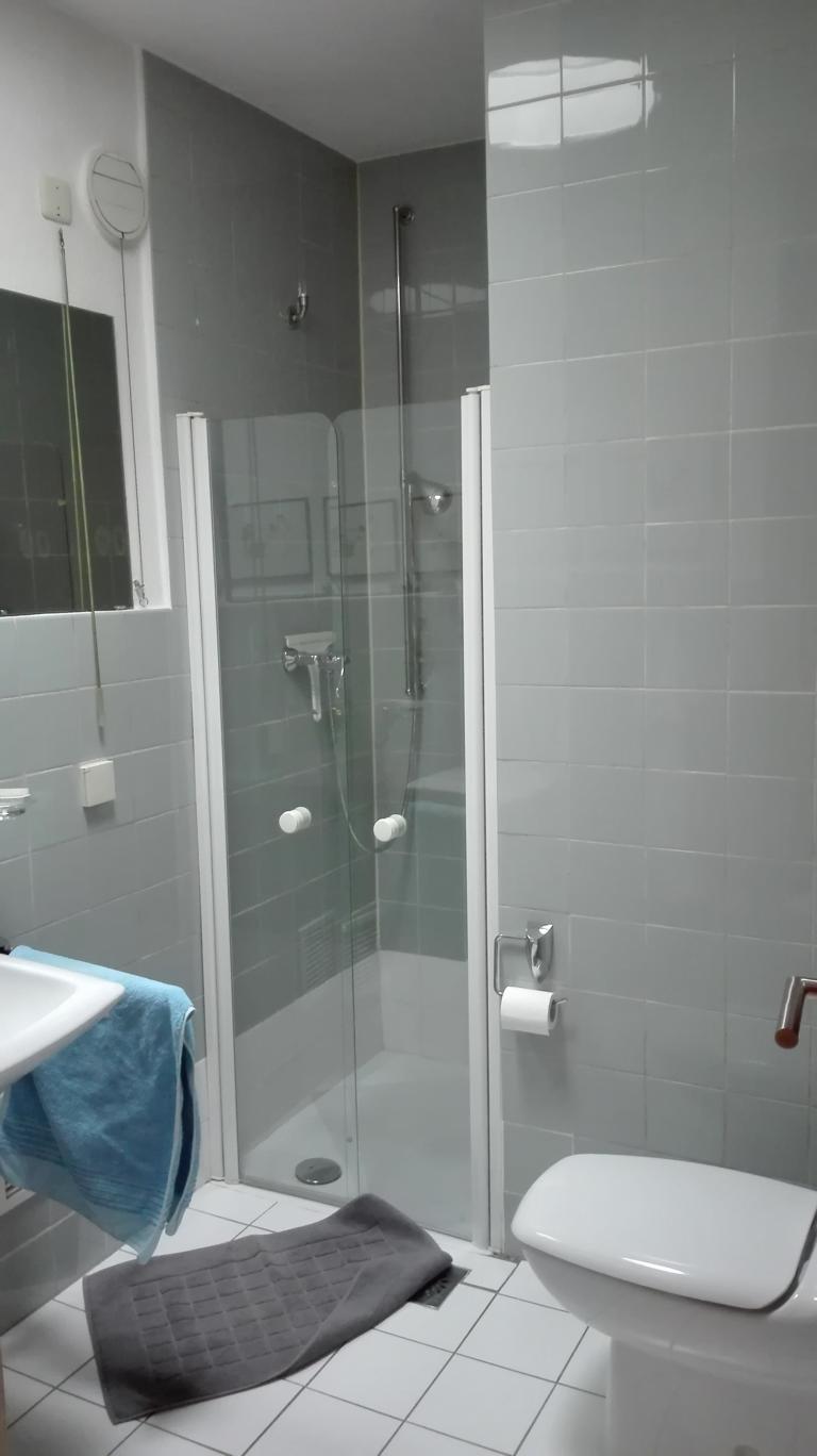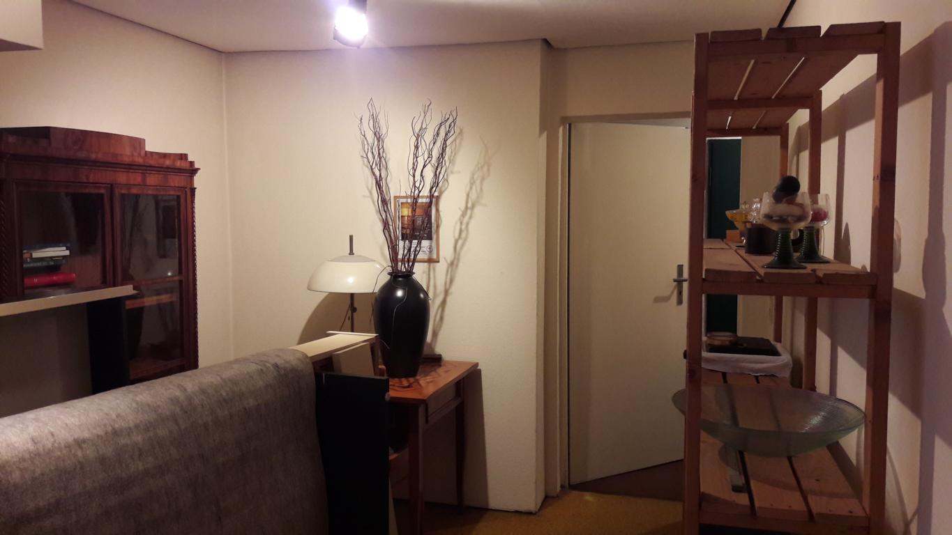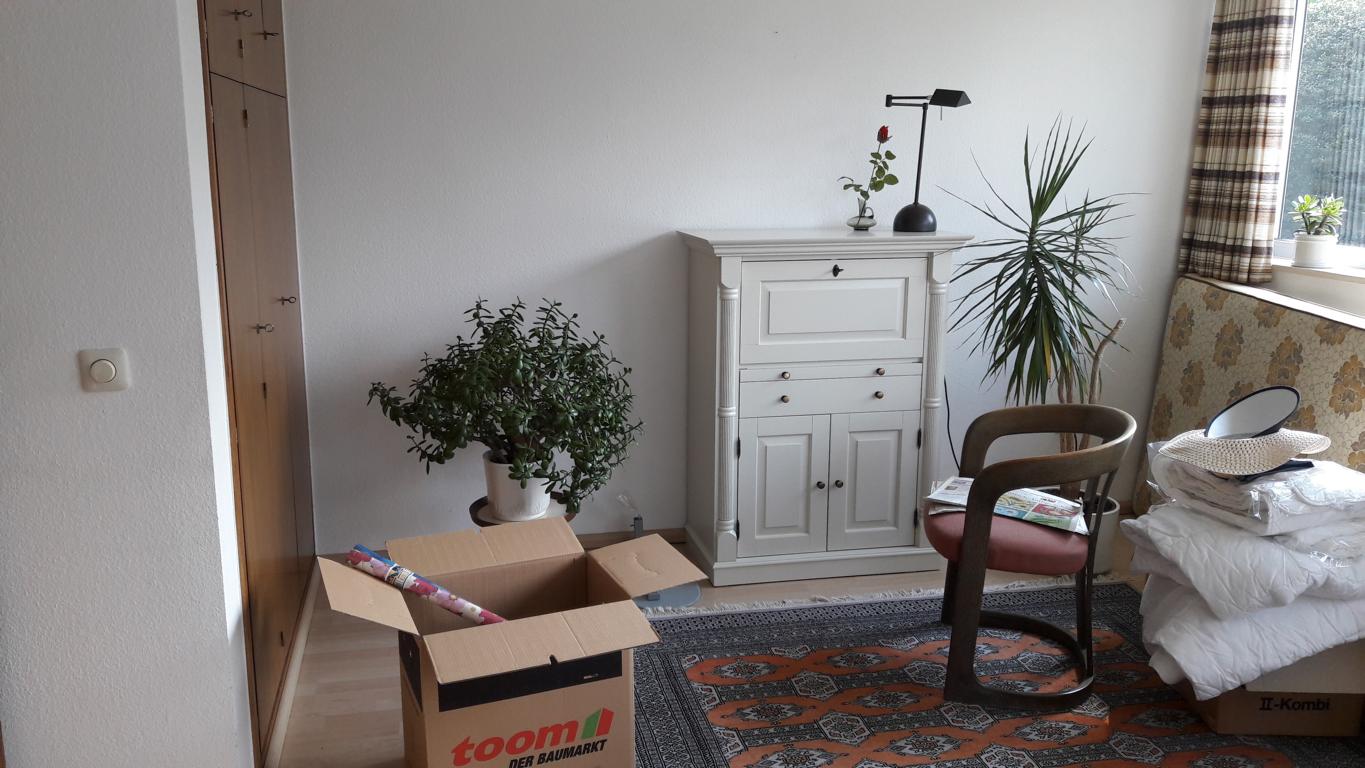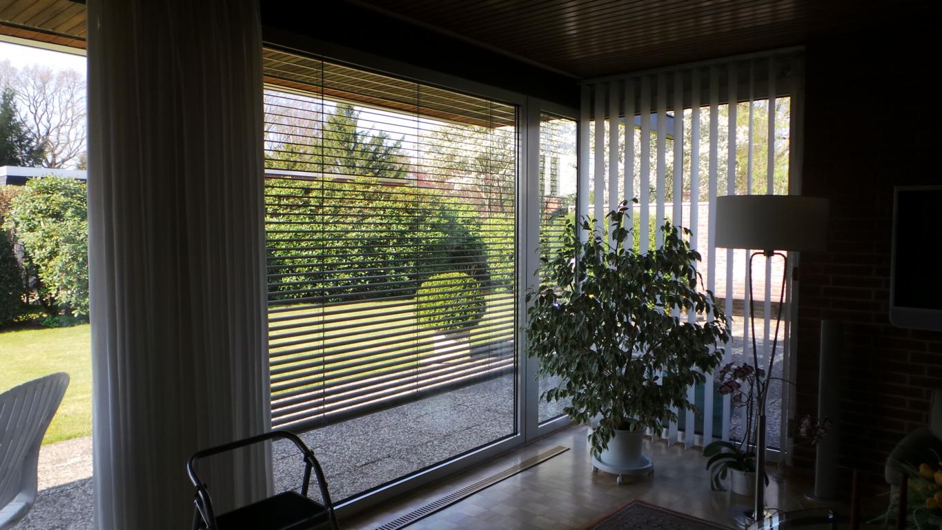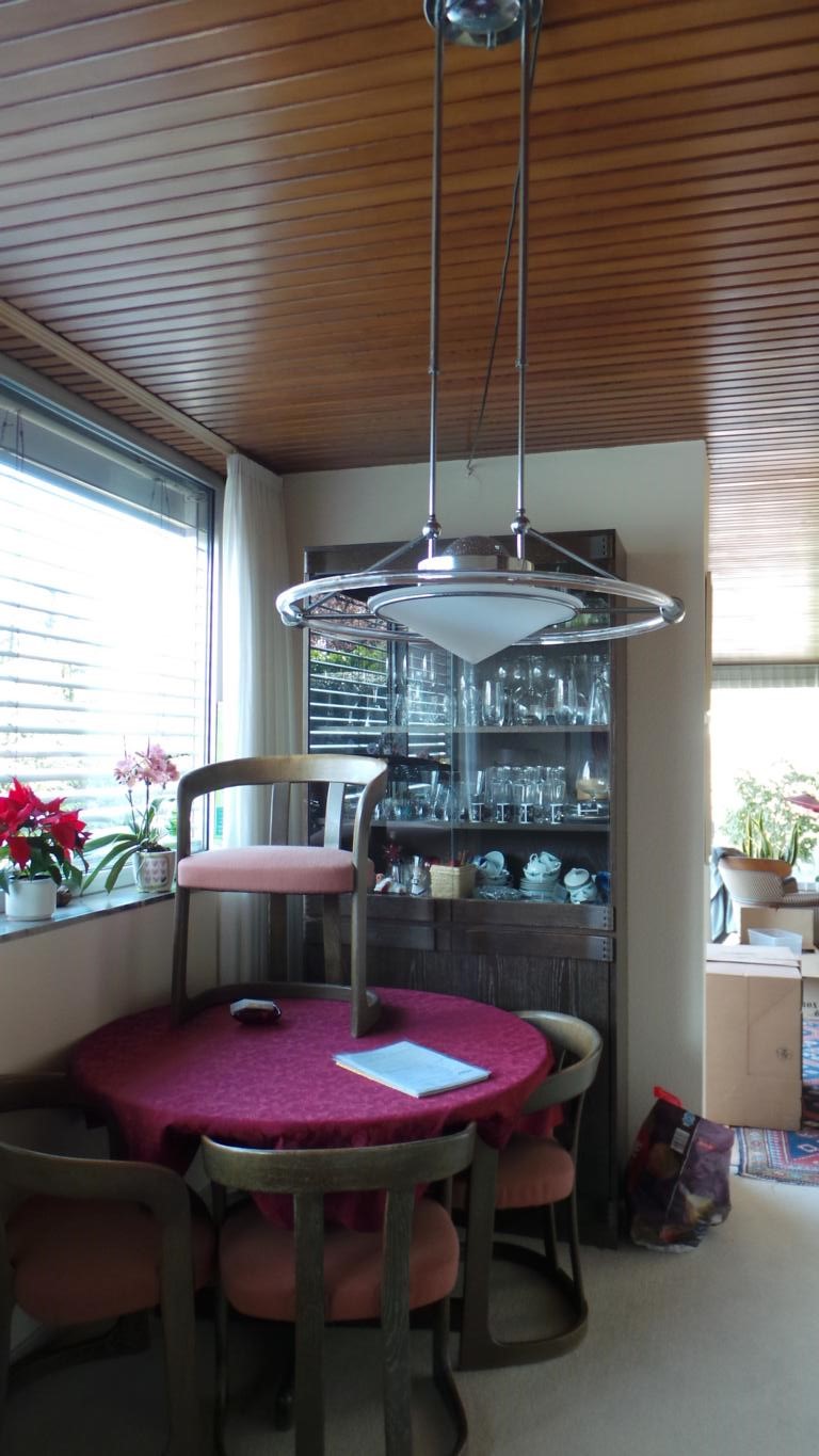 Der Essbereich wurde mit einer Trennwand, welches als Regal ausgebildet wurde, geschlossen. Dahinter befindet sich nun das Gäste-/Arbeitszimmer, welches über den Flur erschlossen wird. Da keine natürliche Belüftung möglich war, ist eine Lüftung in Richtung Terrasse eingebaut worden.